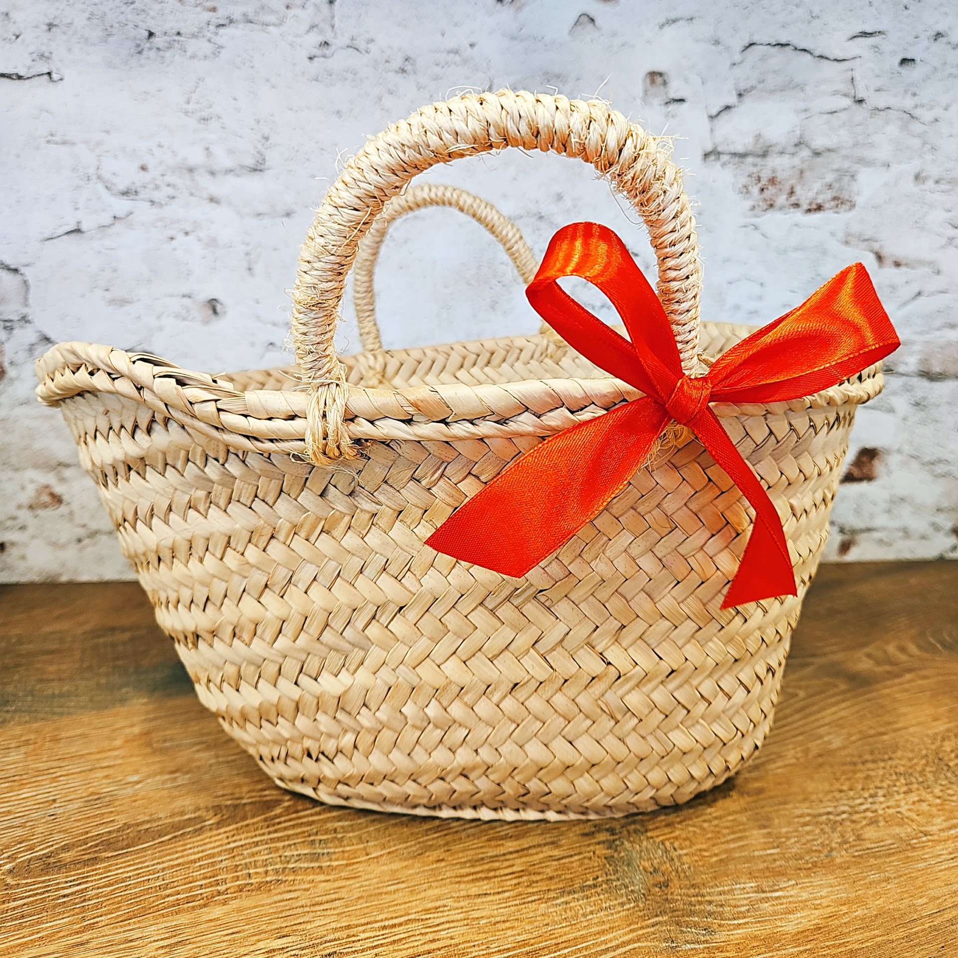 El Capazo Artesano de Palma talla S está trenzado y cosido a mano. Es completamente artesanal y puede ser utilizado como revistero, masetero, para pasear, para ir al mercado, para utilizarlo como quiera la persona a quien se lo vas a regalar. A la hora de hacer tu pedido, ten en cuenta que tiene capacidad para una botella y 3 productos pequeños. Por ejemplo: 1 caja de pasta, 1 caja de ñoquis, un trozo de queso, un bote de salsa y una bolsa de taralli.