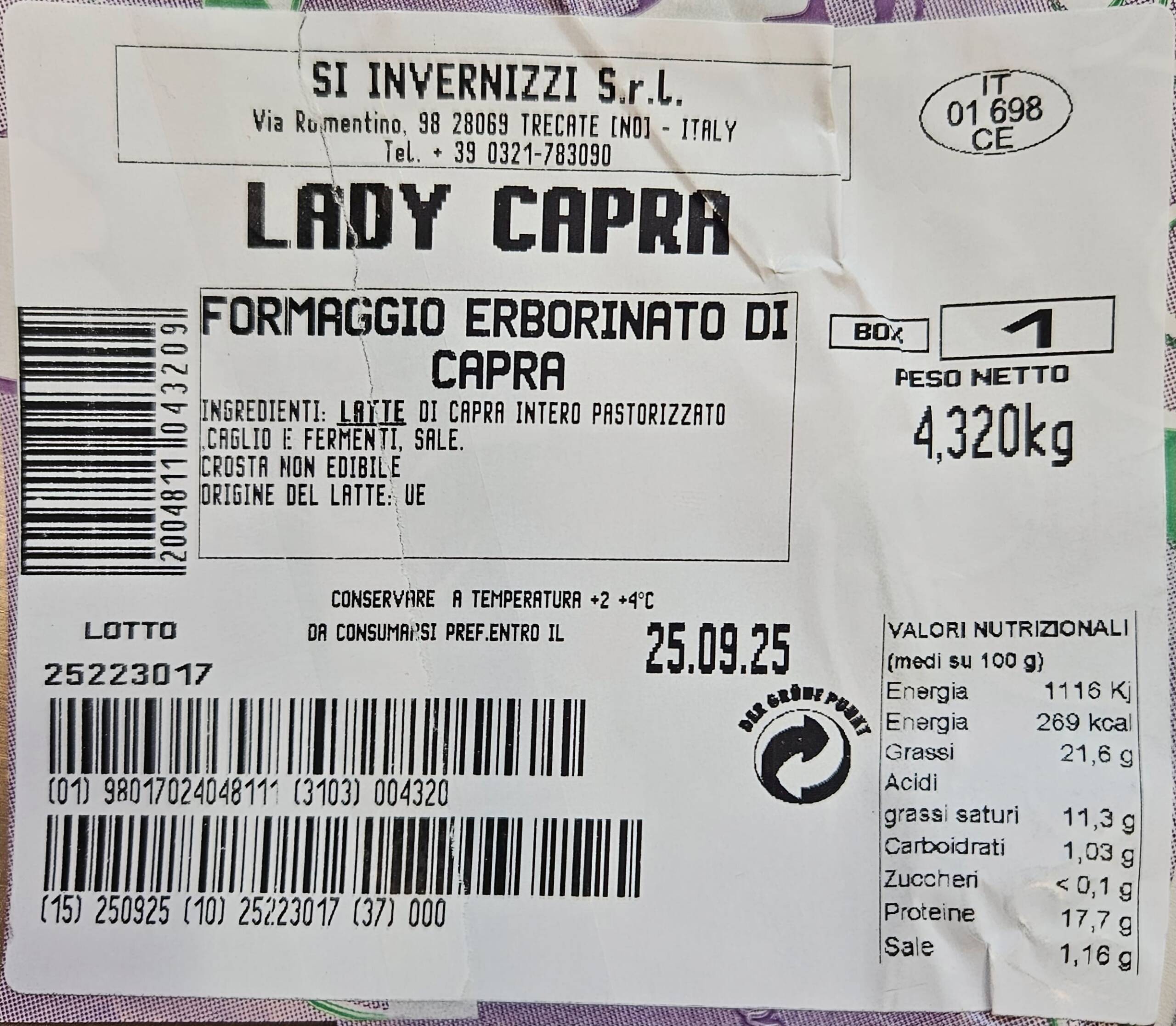 En nuestra tienda puedes comprar Lady Capra, el queso azul de cabra italiano más cremoso, envasado cuidadosamente para conservar toda su frescura y sabor. ¡Disfruta de un pedazo de Italia en tu mesa!