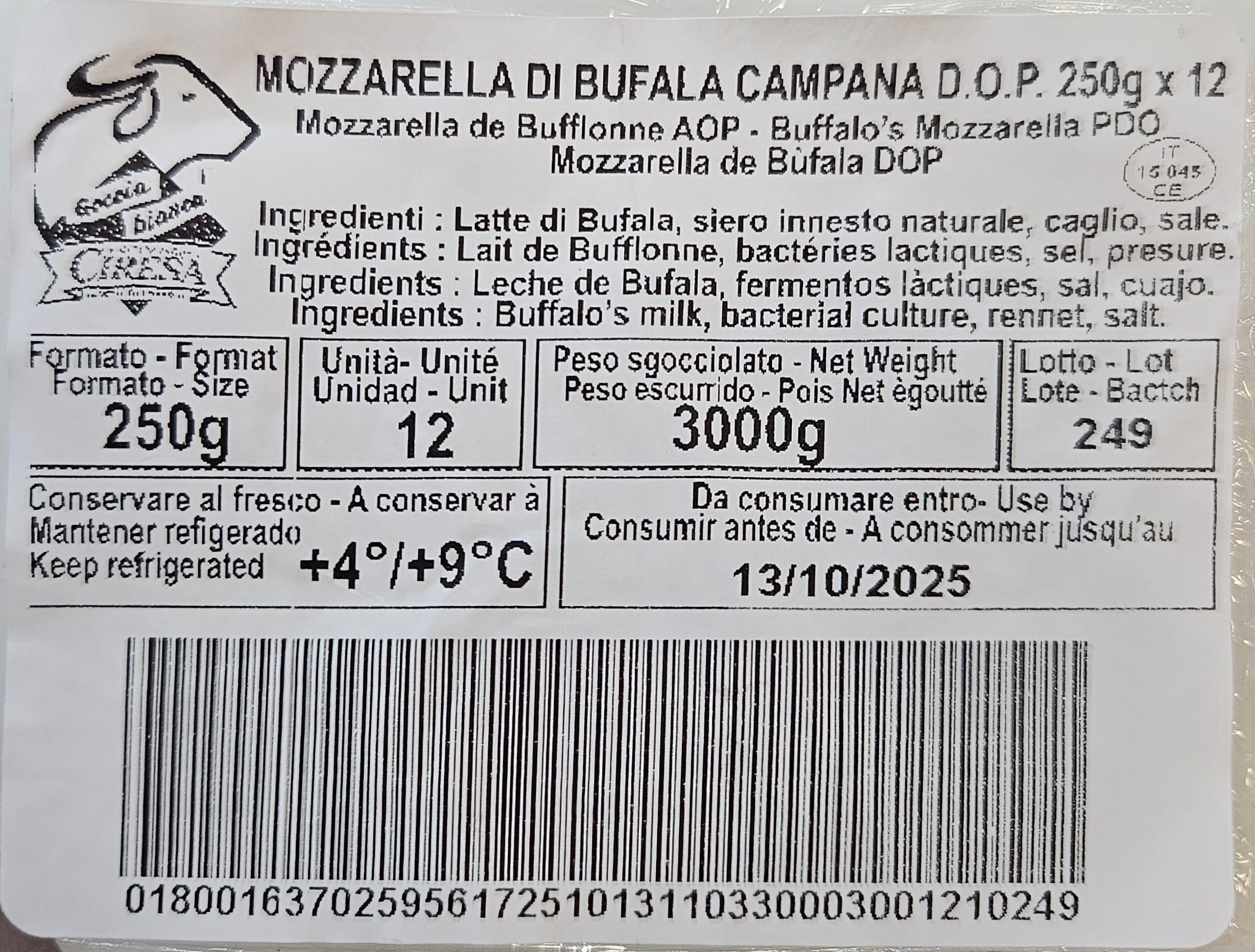 Producida tradicionalmente en la región de Campania, la mozzarella di bufala campana DOP es un ingrediente esencial de la gastronomía italiana y resulta perfecta tanto para disfrutar sola como en recetas clásicas de la cocina mediterránea.
