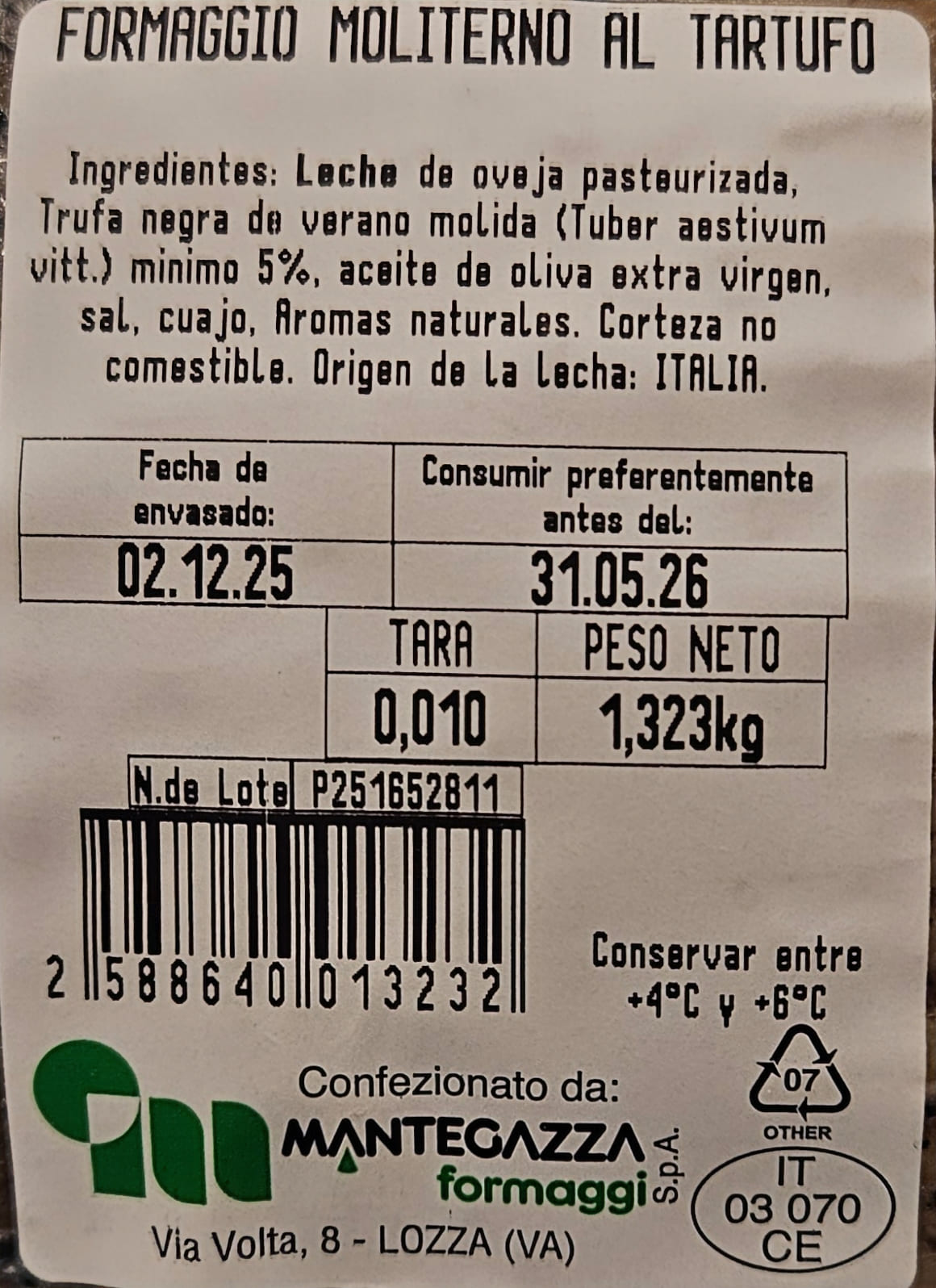 Si buscas un queso con trufa auténtico y sin artificios, este Moliterno es una apuesta segura dentro de nuestra selección de quesos italianos artesanos.