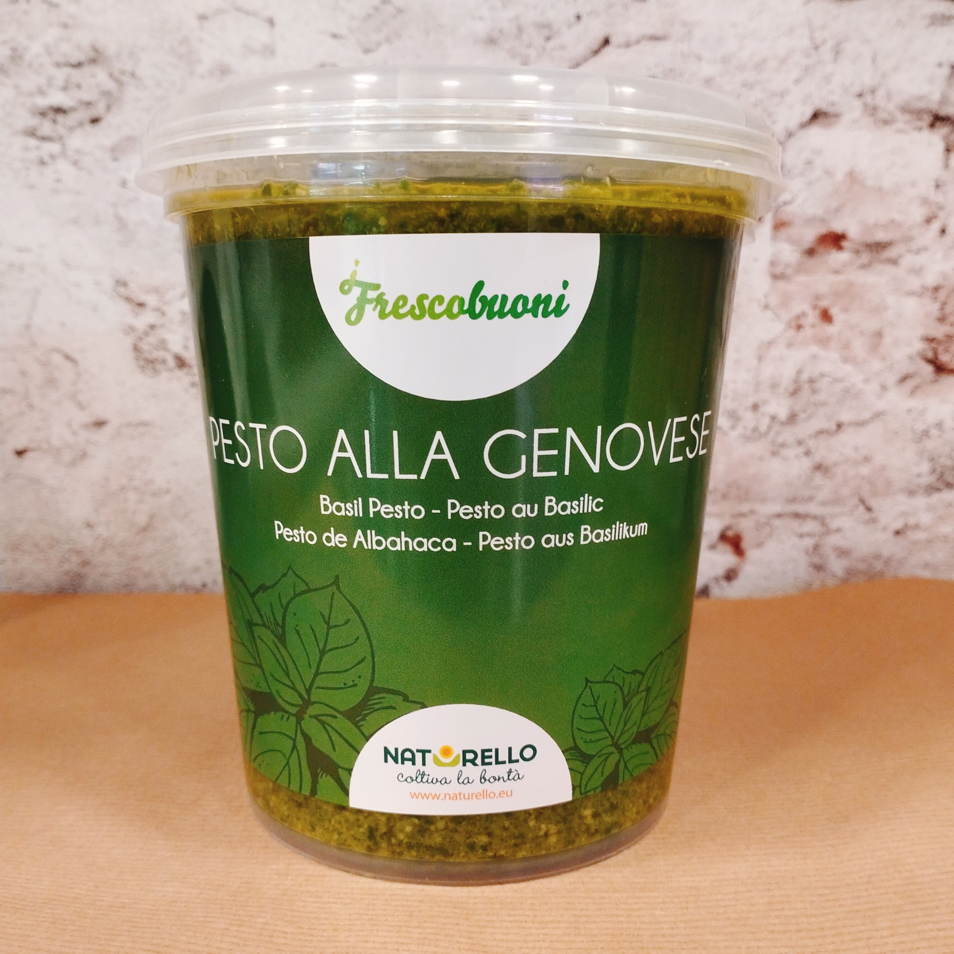 Salsa preparada con albahaca, queso parmigiano reggiano y anacardos. Puede utilizarse diluida con agua de cocción. Para primeros platos de pasta e ideal como ingrediente en pizzas gourmet.