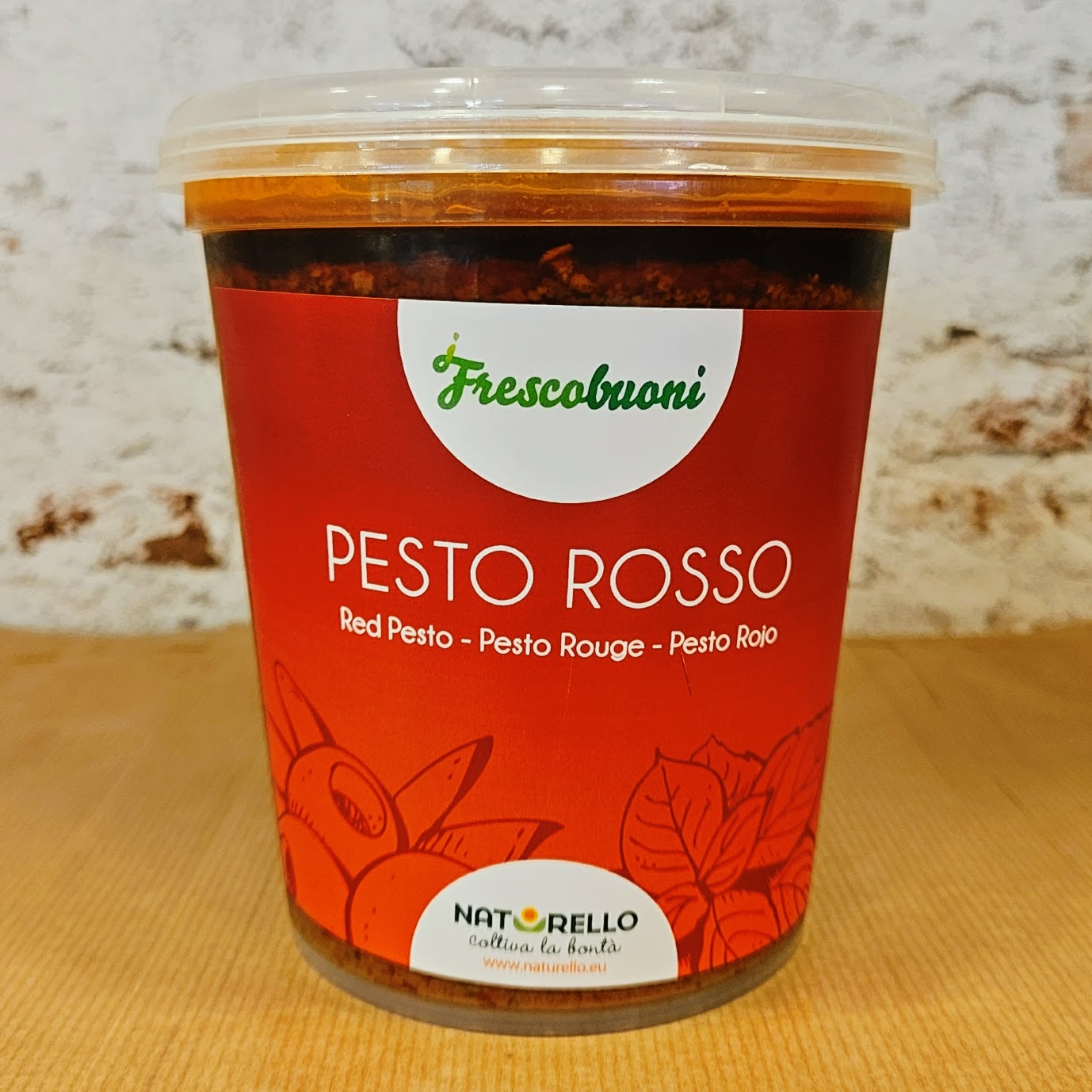Salsa preparada con tomates secos rehidratados, aceite de semillas de girasol, pasta de tomate, anacardos, albahaca 5%, aceitunas verdes 2%, sal, orégano y ajo. Para primeros platos de pasta e ideal como ingrediente en pizzas gourmet.