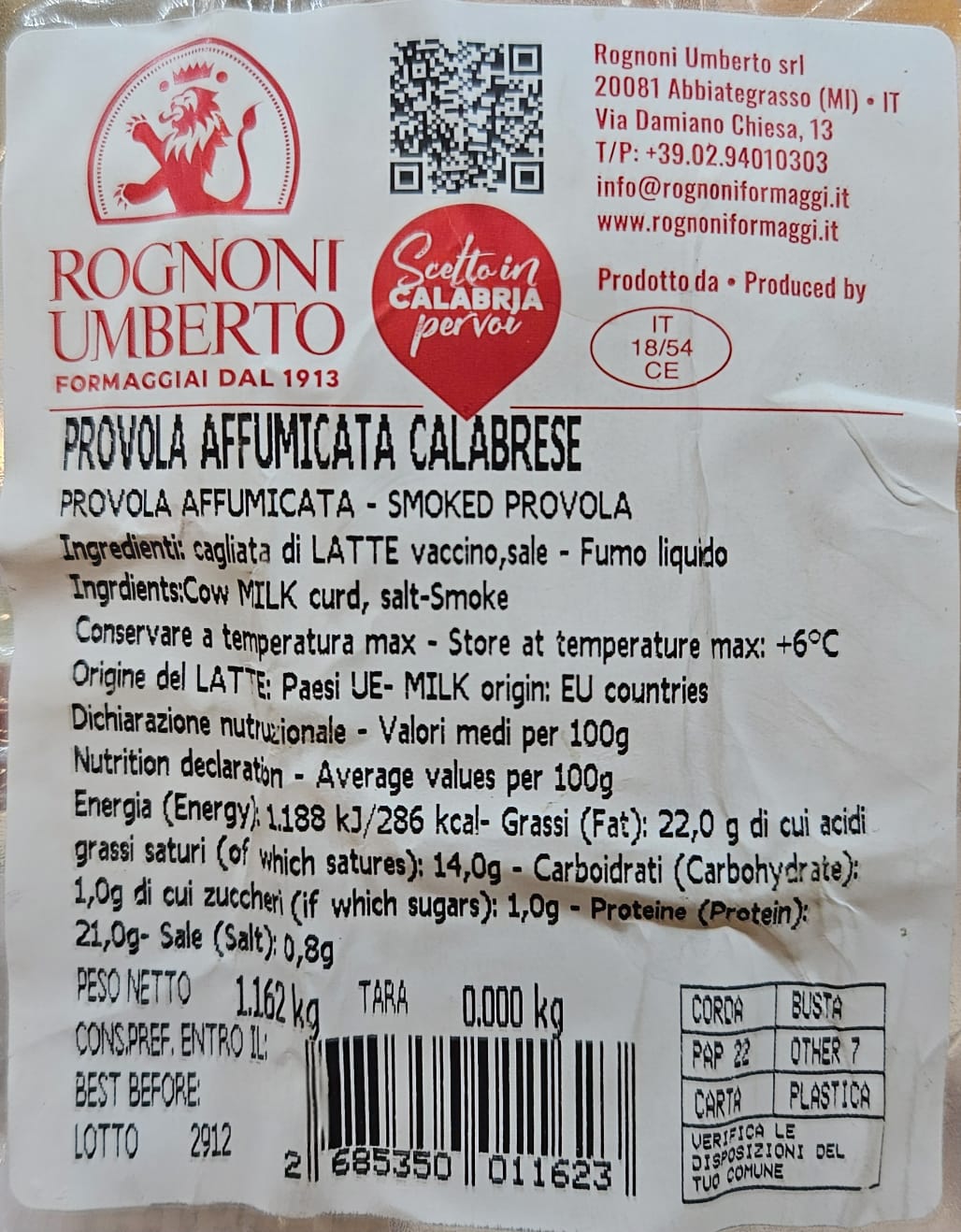 El proceso de ahumado aporta a la provola calabresa ahumada un carácter aromático muy agradable sin dominar el sabor natural del queso. Por eso es un producto muy apreciado tanto para tablas de quesos italianos como para recetas donde se busca un queso que funda bien y aporte un toque ahumado elegante.
