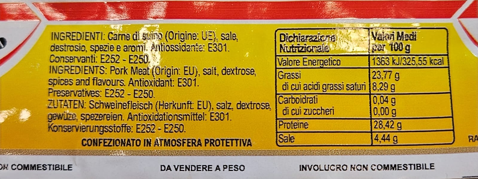 • Elaborado con carne de cerdo italiana seleccionada