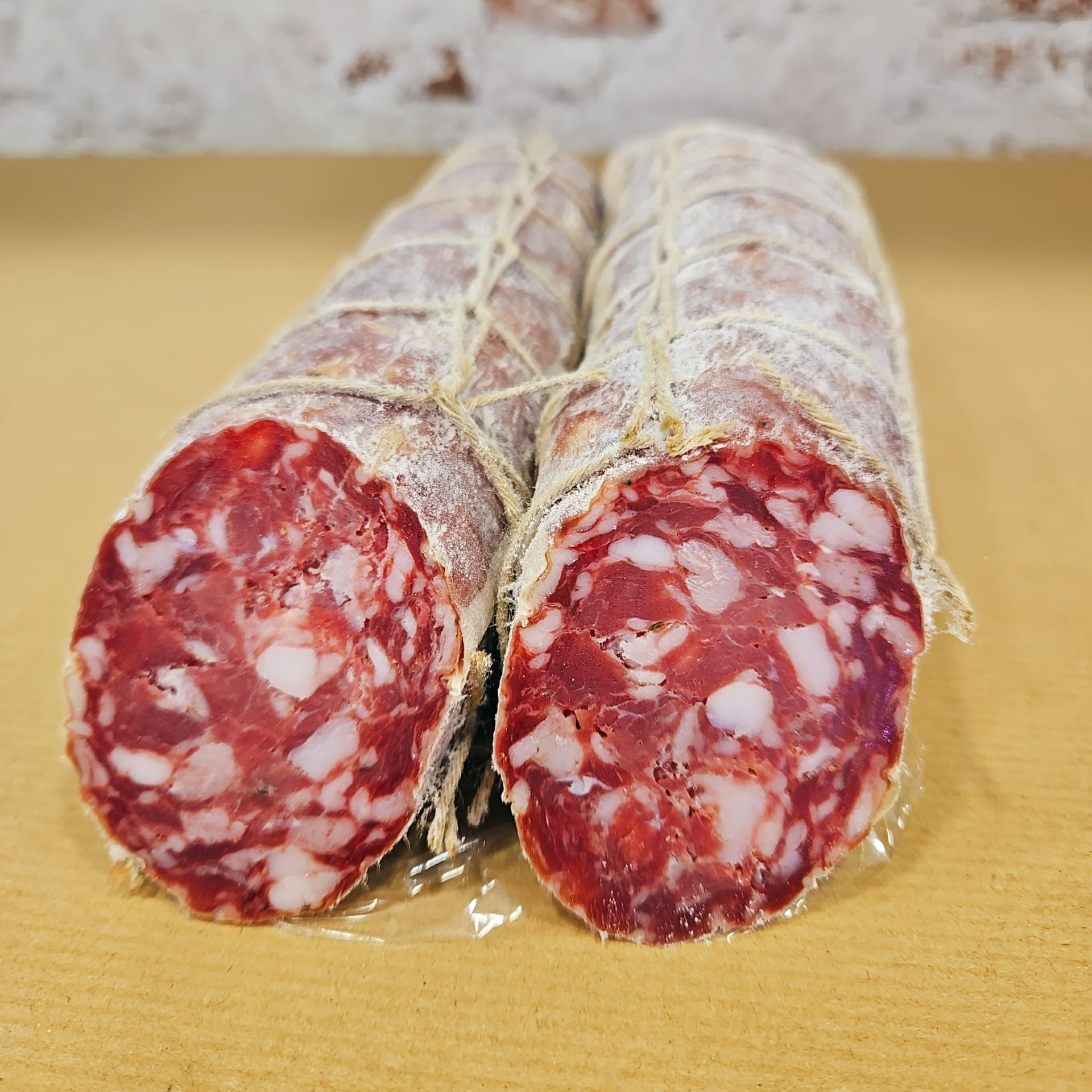 El resultado es un salami de grano medio, textura suave y sabor equilibrado, menos picante que otros embutidos italianos, pero extremadamente elegante y aromático.